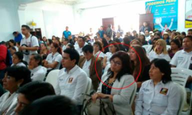 Aunque refirió que eran motivos personales los que la obligaban a retirarse, minutos después se la encontró en la segunda fila de una conferencia de prensa donde se presentaban los candidatos oficiales del partido Podemos Perú, cuyo candidato a Trujillo es Francisco Huertas, exgerente municipal.
