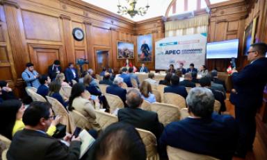 El evento inició con la bienvenida a los participantes de parte de la primera vicepresidenta del Congreso, Patricia Juárez, quien resaltó que el Perú se unió al Foro de Cooperación Económica Asia-Pacífico (APEC) en 1998, luego de un proceso de intensas negociaciones liderado por el entonces presidente Alberto Fujimori. Luego, dijo que el comercio del 66 % de bienes del país se realiza con las economías que integran el APEC. (Fuente: Andina)