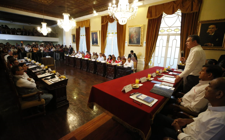 En la sesión descentralizada participa también el presidente del Poder Judicial, José Luis Lecaros; el ministro del Interior, Carlos Morán; la ministra de Salud, Zulema Tomás; la ministra de la Mujer, Gloria Montenegro, quien además es congresista por La Libertad, el ministro de Economía, Carlos Oliva, entre otros.