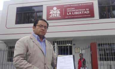 La denuncia la interpuso, el especialista en derecho electoral, Tomás Alva Villa, quien acudió hasta la oficina de enlace del Jurado Nacional de Elecciones (JNE), ubicada en la avenida Nicolás de Piérola para formalizar la querella.