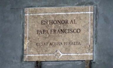 Trujillo en Línea. – El alcalde del distrito de Huanchaco salió a responder las críticas generadas a raíz de la colocación del nombre de César Acuña Peralta en una de las placas recordatorias del obelisco construido en honor al papa Francisco.