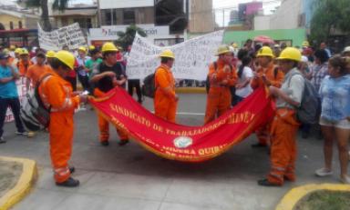Trujillo en Línea.- Luego de bloquear carreteras y acatar un paro de 48 horas, los mineros de Quiruvilca llegaron hasta Trujillo para protestar en la puerta de la Gerencia Regional de Trabajo, para conseguir que dicha área obligue a la empresa para la que trabajan a pagarles sus beneficios laborales.