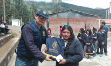 Trujillo en Línea- Miembros de la Fiscalía Superior Mixta y de la Fiscalía Provincial Mixta Corporativa de la provincia de Sánchez Carrión, entregaron 220 paquetes de útiles escolares a los alumnos de inicial, primaria y secundaria del colegio ‘Paja Blanca del distrito de Chugay.