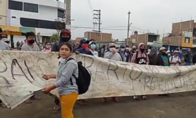 Desde la madrugada, los trabajadores volvieron a realizar intentos de toma de la vía en los sectores Valle de Dios y Víctor Raúl, pero el fuerte cordón policial se los impidió por lo que optaron en realizar una marcha pacífica al costado de la carretera.