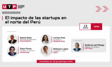 Trujillo en Línea.- La Universidad Tecnológica del Perú (UTP) realizará el conversatorio virtual “El impacto de las startups en el norte del Perú”, con la participación de representantes de emprendimientos y empresas emergentes con alto componente tecnológico.