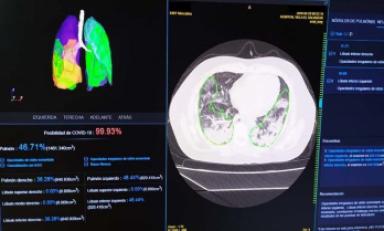 "En menos de 30 segundos analiza cada lámina de una tomografía de tórax completo y segmenta todas las posibles lesiones de neumonía, entre ellas las causadas por el nuevo coronavirus", dijo. Con dicho análisis, sumado a la historia epidemiológica y las manifestaciones clínicas del paciente, se logra hacer un diagnóstico de covid-19.