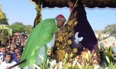 La Misa de Fiesta (de “Campaña”) estuvo presidida por monseñor Miguel Cabrejos Vidarte OFM., Arzobispo de Trujillo y concelebrada por todos los sacerdotes del Decanato San Mateo, en la Plaza de Armas de esta localidad norteña.