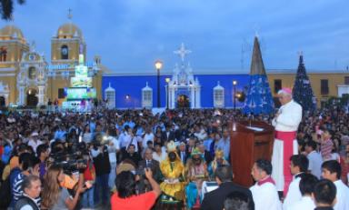 En el frontis del Arzobispado, los organizadores y padrinos del festival recibieron a los magos del Oriente: Baltazar, Gaspar y Melchor, para luego dirigirse, en multitud, al pesebre navideño y ofrecerle al Niño Dios el oro, el incienso y la mirra, que traían consigo los hombres de oriente. El acto prosiguió con la adoración al Salvador, palabras de nuestro Arzobispo, palabras de los reyes magos, el agradecimiento del alcalde provincial de Trujillo y una salerosa marinera.