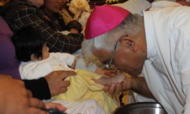 Trujillo en Línea.- Continuando con las actividades programadas por Semana Santa en Trujillo, el Arzobispo, monseñor Miguel Cabrejos Vidarte OFM., lavará los pies a 12 niños damnificados de los sectores más afectados, este Jueves Santo, a las 6:00 pm., en la Basílica Catedral.