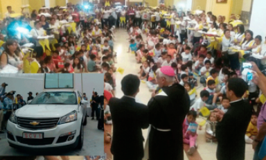 Antes de la presentación de la unidad, se bendijeron las túnicas de los 500 niños que conformarán los Ángeles del Papa. Ellos estarán junto a sus padres en un lugar privilegiado para cantar el himno 'Con Francisco a caminar' durante la misa en la explanada de Huanchaquito.