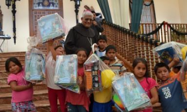 Trujillo en Línea.- El Arzobispo de Trujillo, monseñor Miguel Cabrejos Vidarte OFM., compartió un almuerzo navideño con más de 200 niños de las diferentes parroquias de la Arquidiócesis de Trujillo. Esta celebración se desarrolló en el patio principal de la sede episcopal.
