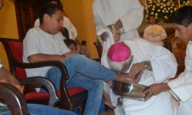 Trujillo en Línea.- Doce jóvenes que llegaron a revestirse de la Guardia Suiza- Peruana, para recibir al Sumo Pontífice, en su visita a Trujillo, fueron elegidos para representar a los apóstoles en la Misa de “La Cena del Señor”, mañana jueves Santo, a las 6:00 de la tarde, en la Basílica Catedral, en la que el Arzobispo y presidente de la Conferencia Episcopal Peruana, monseñor Miguel Cabrejos Vidarte OFM., les lavará y besará los pies, imitando el gesto de Cristo, en señal de humildad.