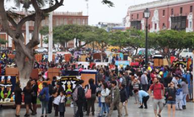"Estamos en la Plaza de Armas en esta celebración de la víspera del Corpus Christi Arquidiocesano, junto a los niños que están manifestando el testimonio de su amor y su fe a Jesús Eucaristía. Observamos desde el más pequeño que demuestra ese amor al Santísimo Sacramento. Son 295 que se han hecho presente junto a movimientos y departamentos", expresó el Vicario General de la Arquidiócesis de Trujillo, R.P. Oscar Murillo Villanueva, durante su visita a cada periódico mural.