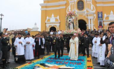 Trujillo en Línea.- Durante la celebración de la homilía en homenajea a Santa Rosa de Lima, Patrona de la Policía Nacional del Perú, de las Américas, de las Enfermeras, de las Indias y de las Filipinas, el Arzobispo de Trujillo,monseñor Miguel Cabrejos Vidarte OFM., presidió la Misa de Fiesta, y se dirigió a la familia policial para reconocer la labor que realizan al frente de la institución.
