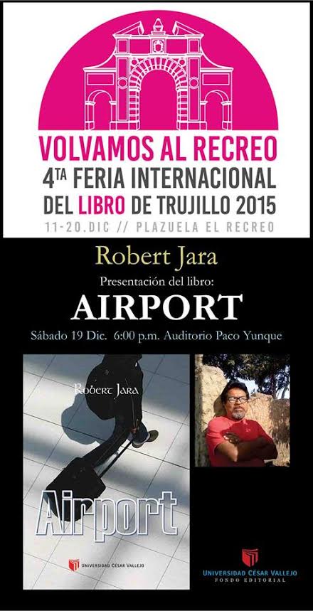 Trujillo en Línea.- El escritor Robert Jara, a cuatro años de haber publicado “Nostalgia de barro”, poemario muy bien recibido por la crítica especializada, presentará, en el marco de la 4 Feria Internacional del Libro de Trujillo 2015, su segundo poemario titulado “Airport”.