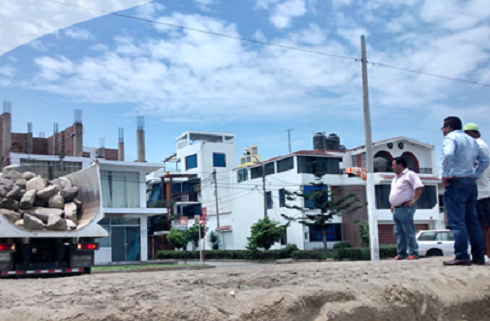 material hacia la zona más afectada por la erosión costera, bajo la asesoría de especialistas. La maquinaria fue cedida por el Gobierno regional de La Libertad, que apoyó con dos cargadores frontales, así como arena y rocas que se fueron colocando a manera de un muro de contención.
