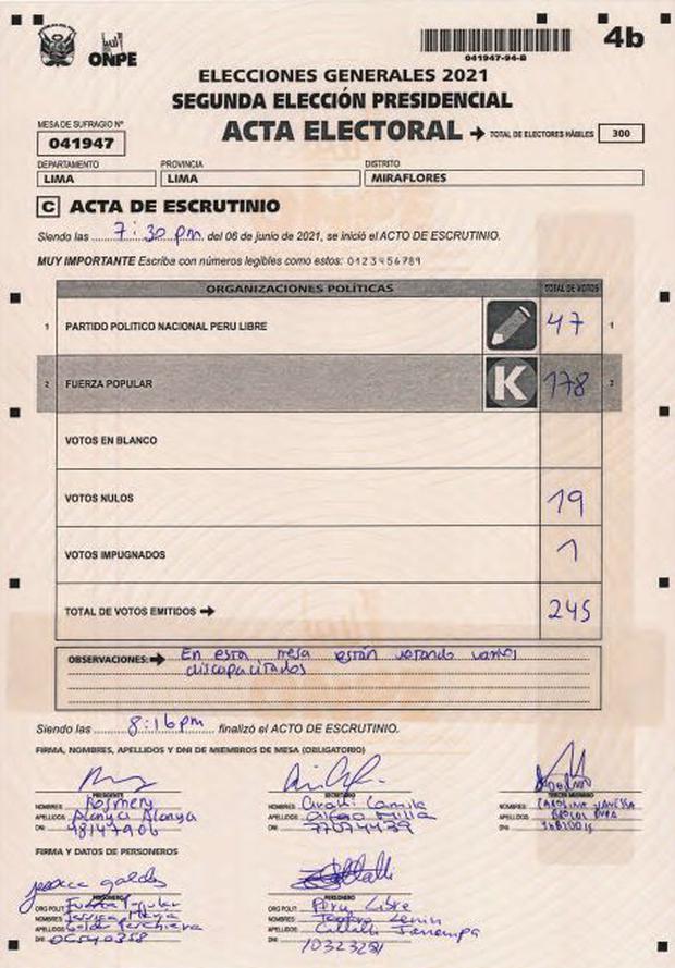 LEER MÁS Keiko Fujimori denuncia “indicios de fraude en la mesa” en la segunda vuelta electoral