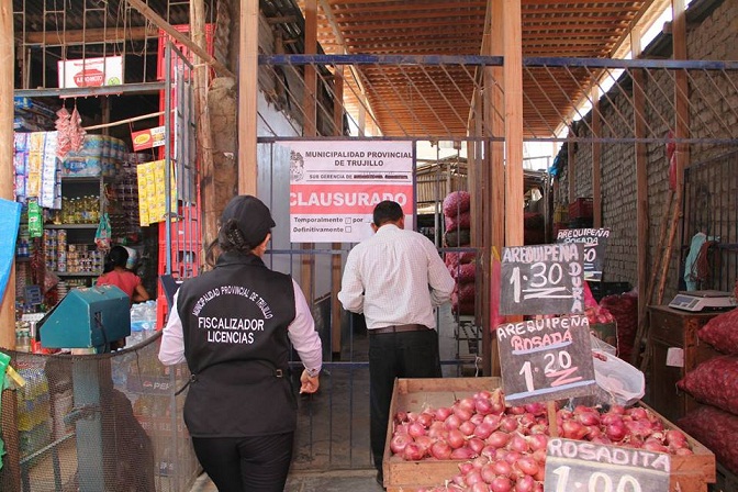 Trujillo en Línea.- El alcalde de Trujillo, Elidio Espinoza Quispe, encabezó un megaoperativo en el sector El Progreso, del mercado La Hermelinda, donde fueron clausurados seis bares informales y a los que concurre gente de dudosa reputación.