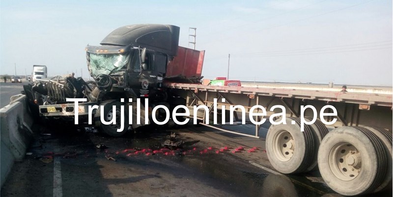 Trujillo en Línea.- La racha de accidentes de tránsito en la Panamericana Norte no tienen cuando acabar. Esta vez en el kilómetro 583 un semitráiler chocó contra la parte posterior de un camión dejando un herido.