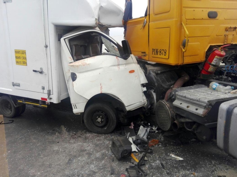 El vehículo pesado era conducido por Wilmer Valderrama Negreiros, quien nada pudo hacer para evitar el impacto. El chofer también resultó herido y fue evaluado de emergencia a una clínica particular.