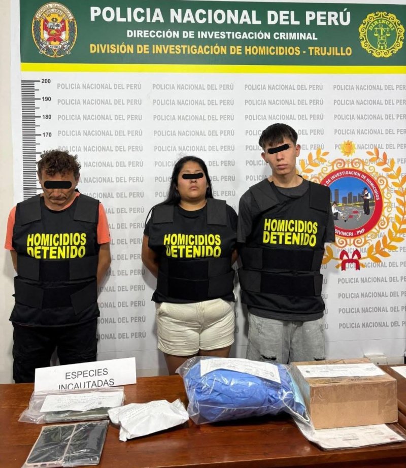 A los primeros dos detenidos se les encontró una jeringa con una sustancia que será sometida al análisis para determinar de qué se trata.Los hombres fueron identificados como Nilsson David Chávez Castañeda y Juan Carlos Sánchez Noriega.Posteriormente se logró la captura de Hellen Antuanet Pirgo Villar, quien es investigada por presunto encubrimiento real tras haber eliminado información clave para las diligencias, según informó el general Franco Moreno, jefe de la Región Policial La Libertad.