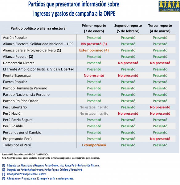 - Alianza para el Progreso del Perú y Todos por el Perú presentaron el primer reporte económico – financiero en forma extemporánea.