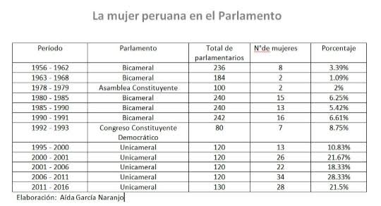 Chimbote en Línea (Por Aída García Naranjo) La Asociación Civil Transparencia reporta 39% de mujeres que postulan a ser parlamentarias en el 2016 a nivel nacional y 34 % en Lima, con lo cual la presencia promedio es mayor en las regiones y la cuota de género de 30% ha sido superada.