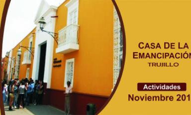 Trujillo en Línea.- Publicamos a continuación la agenda de actividad cultural que ofrecerá la Casa de La Emancipación para el mes de noviembre 2015; que incluye conciertos de música, exposiciones, conferencias, recitales, etc. Todas las actividades son de ingreso libre para el público en general.