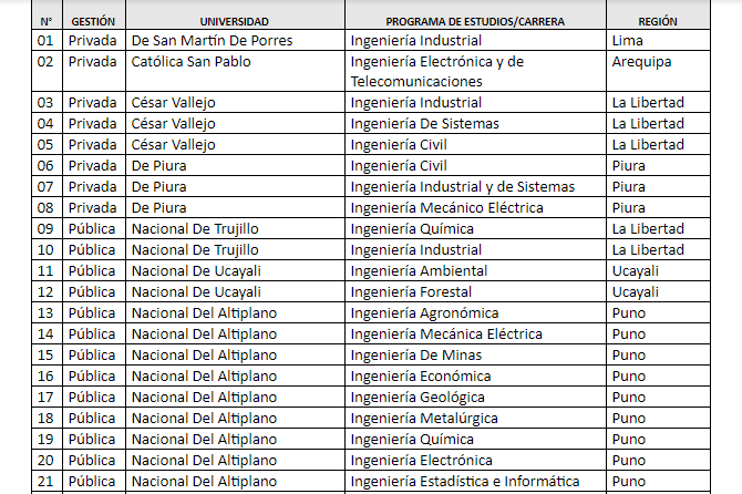 La Libertad: Estas son las 32 carreras de ingeniería acreditadas por el Sineace