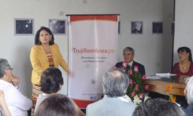 Trujilloenlinea.pe fue presentado en una emotiva ceremonia realizada hoy a las 11 a.m. en el salón principal de la Casa de la Emancipación, y contó con la presencia de importantes personalidades del quehacer periodístico trujillano y representantes de la sociedad civil, quienes dando su respaldo a Karyna de Orbegoso, como directora de este joven medio digital, auguraron rotundos éxitos en este nuevo emprendimiento de la dinámica periodista trujillana.