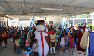 Trujillo en Línea.- Con diversos actos que incluyó una campaña de salud gratuita, donación de libros, donación de ropa y finalmente un show navideño, chocolatada y reparto de juguetes, fueron agasajados más de medio millar de niños de los sectores más humildes de Pampas de Jaguey, Chiclin y asentamiento humano La Pascona.