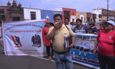Trujillo en Línea.- Diversos sindicatos de la municipalidad Provincial de Trujillo protestaron en el frontis del palacio municipal, en rechazo al incremento de los sueldos de gerentes y subgerentes, como anunció el alcalde Daniel Marcelo.