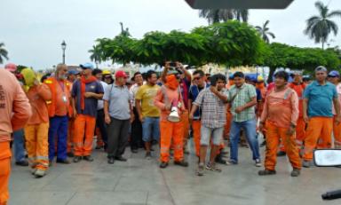 Obreros de Municipalidad de Trujillo protestan por sueldos
