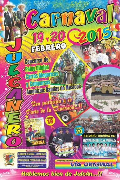 El viernes 20, se efectuará el encuentro de cuadrillas de los diferentes barrios de Julcán, después vendrá el concurso de coplas y por la noche el baile popular con las orquestas Vía Original, String Karma y los Campesinos de Bambamarca.