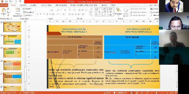 Este lunes 30, desde las 8:00 am los alumnos se conectaron a la plataforma Zoom para exponer los temas trabajados durante el último año 2019. Cada uno de ellos se presentó en un turno asignado para sustentar su tesis durante 20 min. frente al panel de jurados.